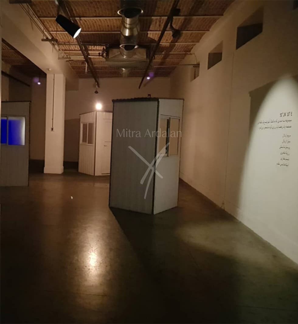 (51^24′10″E) is the name of art work. The name of the work is named based on the geographical location of the exhibition. In this project, we used sound art as a medium. Inside the gallery, there were three conexs boxes in size (1,10mx 2 m). In each conex there were one sound art. Determined inside of the conexes was devoid of any sensation inside of them. The boxes were dark and the audience could listen to the headset that was inside of the conex and the sound that was played from the conex 1, to conex 2 and then conex3. conexes boxes encountered with different sound arts. In fact, three places and three events took place simultaneously, in parallel at that point and the sound was different in interacting with the audience itself by dealing with the work.