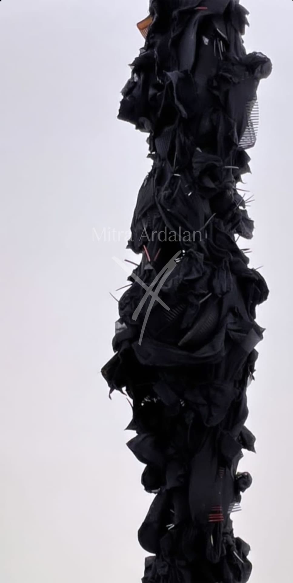 In this project, I tried to portray this empathy by using two feminine elements (comb and sock) and taking a metaphor from the meaning of these two words. For me, the use of combs somehow expresses feminine beauty and delicacy. A beauty that has been somehow hidden under the dust of problems and social contradictions over the years, and on the other hand, the breaking of the combs and their teeth is a kind of metaphor and perhaps an innuendo for ignoring, violence, inattention, etc... Also, the use of socks is very important in completing the meaning of this work, a sock in whose essence femininity and beauty are hidden.