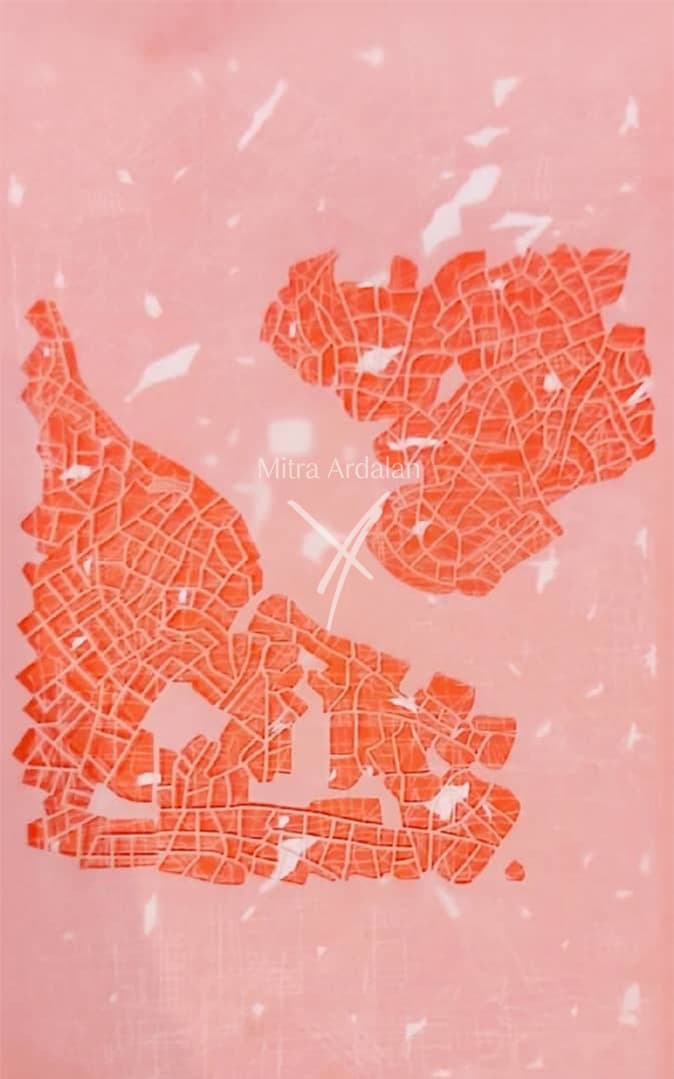 For me, this work was a picture of all the moments, all the pauses, all the sounds, and all the leftovers. In this project, I tried to create a path by drawing a map of my city, Tehran, and combining it with a map of the places I remember, and with the help and use of a real map, as if they were all connected in my imagination at any moment. A path where you can move, pause, and listen in your imagination at any moment.